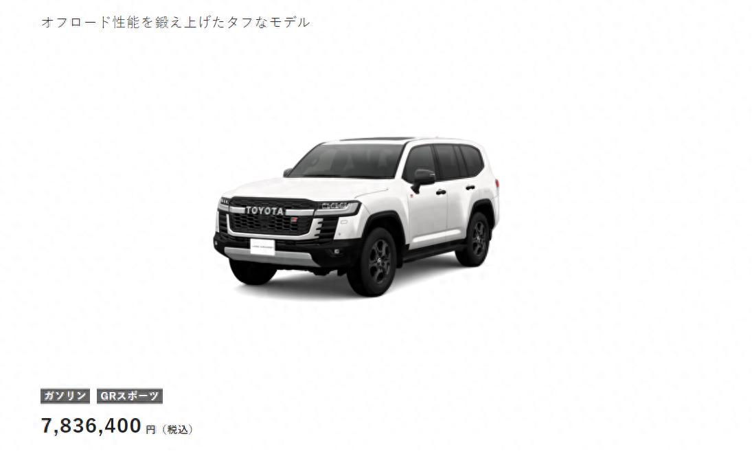 日前,小编从丰田官网获得了(日本官网),新款兰德酷路泽GR SPORT的价格和相关信息,GR SPORT版本也可以说是LC 300全系车型中的旗舰车型,提供3.3T柴油和3.5T汽油版本可以选择,3.5T汽油版的价格为7836400日元,折合人民币37.8万元,AVS运动底盘和E-KDSS悬挂系统也是标配。